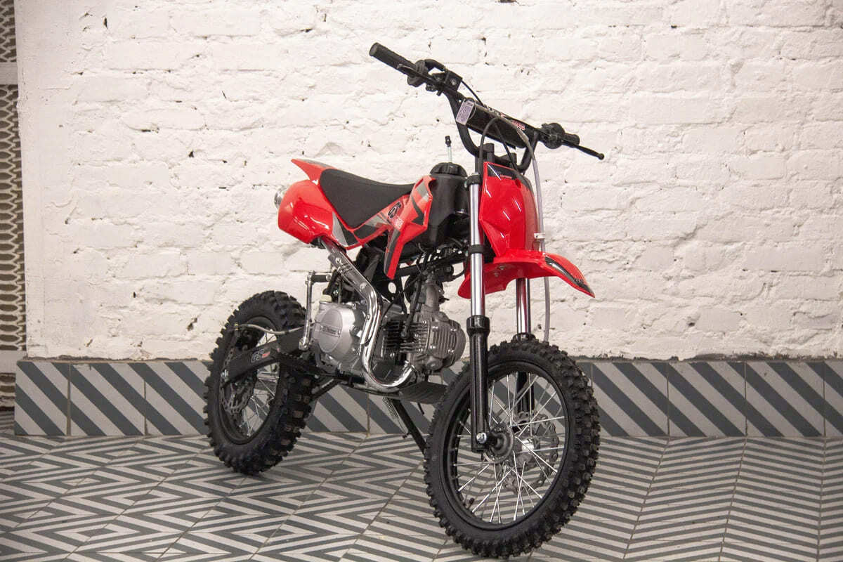 Питбайк оснащён карбюратором JINGKE и одноцилиндровым четырёхтактным двигателем с воздушным охлаждением. Надёжный мотор мощностью 8 л. с. и объемом 125 см³ разгоняет питбайк до 90 км/ч. Трансмиссия - 4х ступенчатая. Система зажигания электронная (CDI). Запуска двигателя - кикстартер. Мощность мотора и небольшой вес питбайка позволяют ему преодолевать значительные препятствия и хорошо заходить в подъёмы.