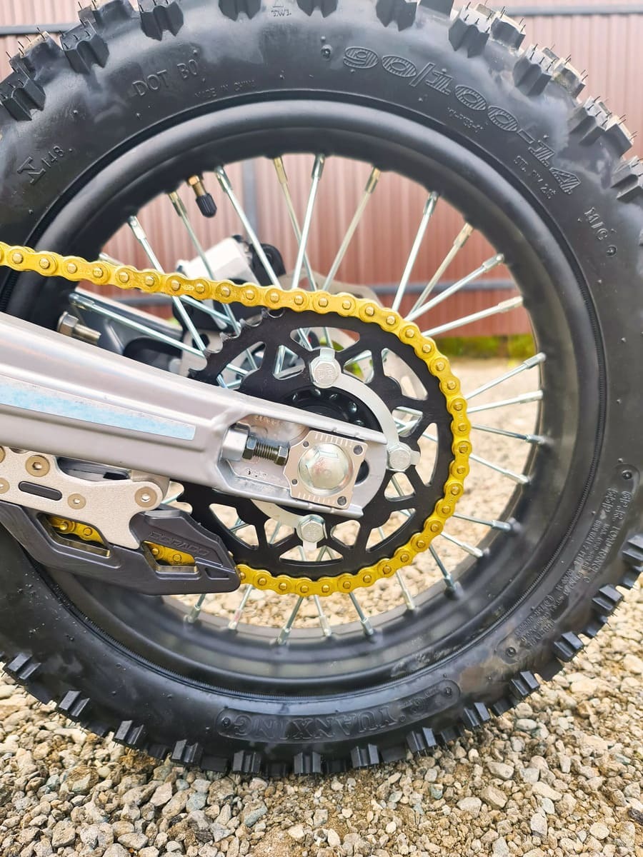Данный питбайк предназначен для езды по пересеченной местности. Отличается проходимостью и лёгкостью в управлении, подойдет, как новичкам, так и опытным райдерам. Изменённая конструкция топливного бака, с наклонной горловиной упрощает процесс заправки топлива. В данной модели используется новый тип пластика, более гибкий чем ранее. Обновлённый дизайн пластика, не только эффектен, но и открывает прямой доступ к регулировке заднего амортизатора. Оснащён обновлёнными пультами управления класса эндуро. Светодиодная фара обеспечивает хорошую видимость в тёмное время суток. Благодаря противоскользящим ручкам, руль не выскользнет из ваших рук даже в самых экстримальных ситуациях. Покрышки с высоким грунтозацепом идеальны для бездорожья. Мощность мотора и небольшой вес питбайка позволяют ему преодолевать значительные препятствия и грязь, хорошо заходить в подъёмы.