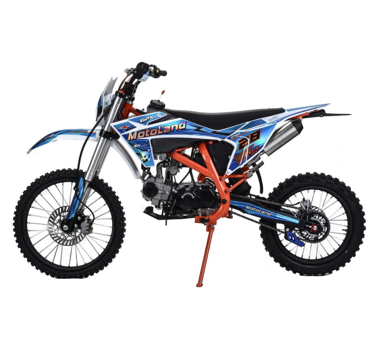 Встречайте долгожданную новинку SX на 140 куб. Питбайк Motoland SX 140 E 19/16 идеален для поездок по грунтовым дорогам и бездорожью. Хорошо чувствует себя на мягком и среднем грунте, разгоняется до 90 км/ч. Оснащён спортивными траверсами и амортизаторами с регулировкой. весит всего 75 кг. Питбайк прост в управлении и не требует специального ухода, подойдёт как новичкам, так и любителям мотокросса.