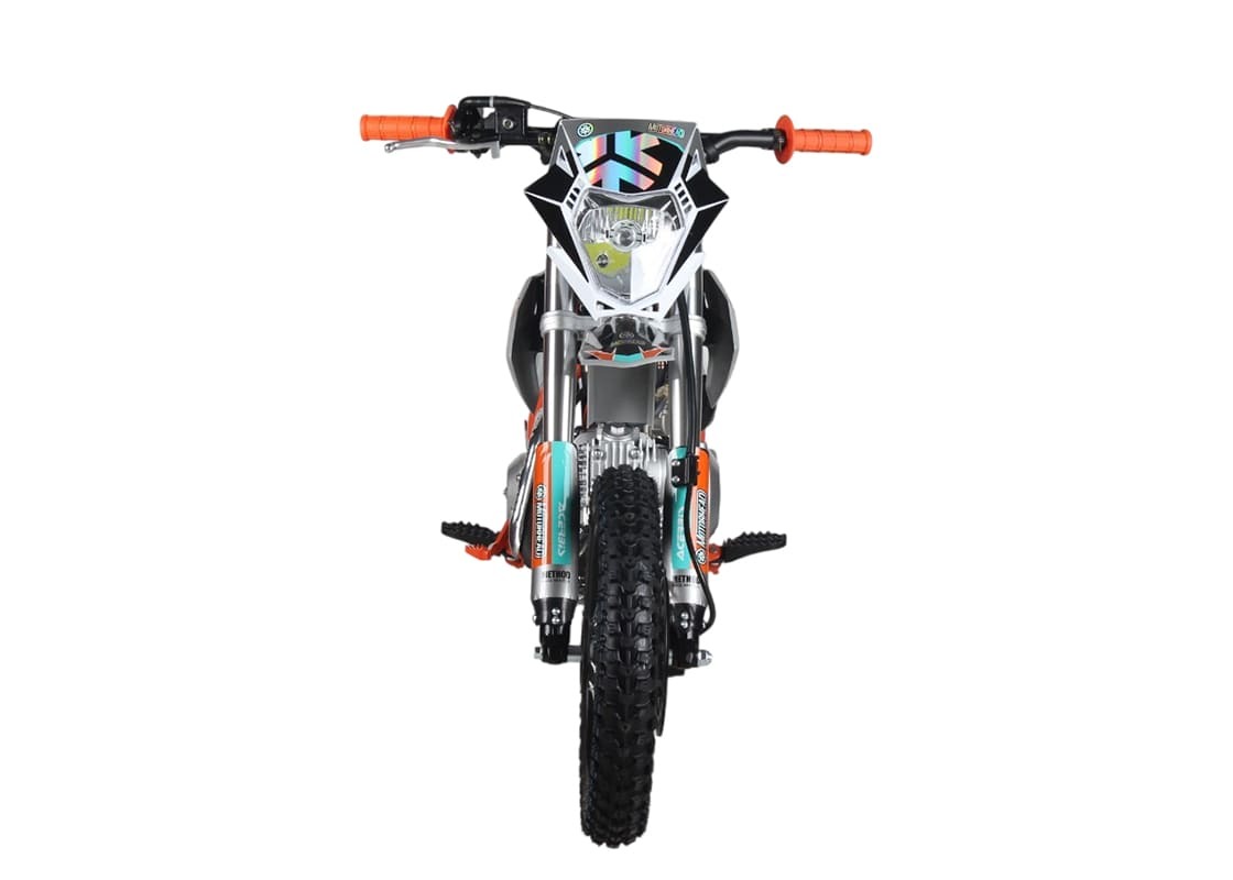 MOTORHEAD CFA110 12/10 - компактный питбайк для детей. Оснащён автоматической трансмиссией, что делает его простым в управлении. Двигатель 110 см³ работает на воздушном охлаждении. Отличный выбор для первых шагов в мотоспорте. Подходит для детей младшего возраста благодаря малым колёсам.