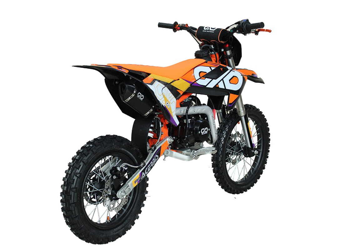 Питбайк OXO PRO 125 M — это модель из профессиональной линейки питбайков, которая привлекает внимание стильным и динамичным дизайном, а также рядом продуманных особенностей. Среди них — удобные откидные ручки, короткоходная ручка газа для точного контроля, силиконовая накладка на подушку для дополнительного комфорта, информативные мото-часы, брендированные ступицы, алюминиевая лапка КПП для надежности и колпачки на колеса в цвет байка, которые завершают спортивный облик модели. OXO PRO 125 M оснащен колесами размером 17/14 дюймов , что обеспечивает отличную маневренность и устойчивость как на трассе, так и на пересеченной местности. Подвеска представлена нерегулируемой телескопической вилкой перевернутого типа спереди и нерегулируемым моноамортизатором сзади, гарантируя сглаживание ударов и уверенное поведение на различных поверхностях.