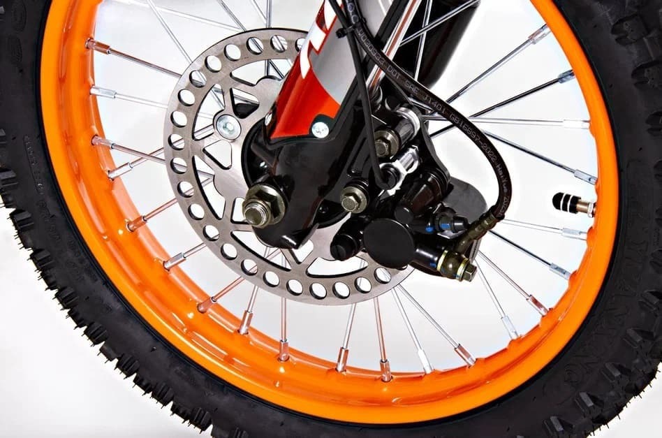 Задняя подвеска выполнена с регулировкой преднатяга пружины, которая позволяет питбайку стабильно проходить сложные участки трассы, не виляя на поворотах. Стальной маятник изготовлен из надёжного хромомолибденового сплава.