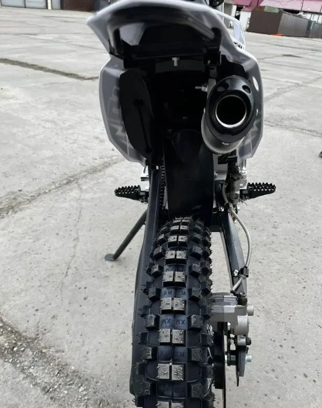 Удлиненная колесная база 1210 мм увеличивает устойчивость питбайка и позволяет гонщику комфортно держаться даже на раскисших от дождя дорогах. Диаметр колёс составляет 17/14 дюймов.