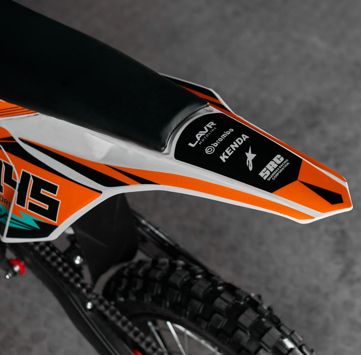 Питбайк, в дизайне которого отражается спортивный характер и стремление к победам. Чёткие линии и цепляющая взгляд цветовая гамма придаёт мотоциклу эксклюзивность.