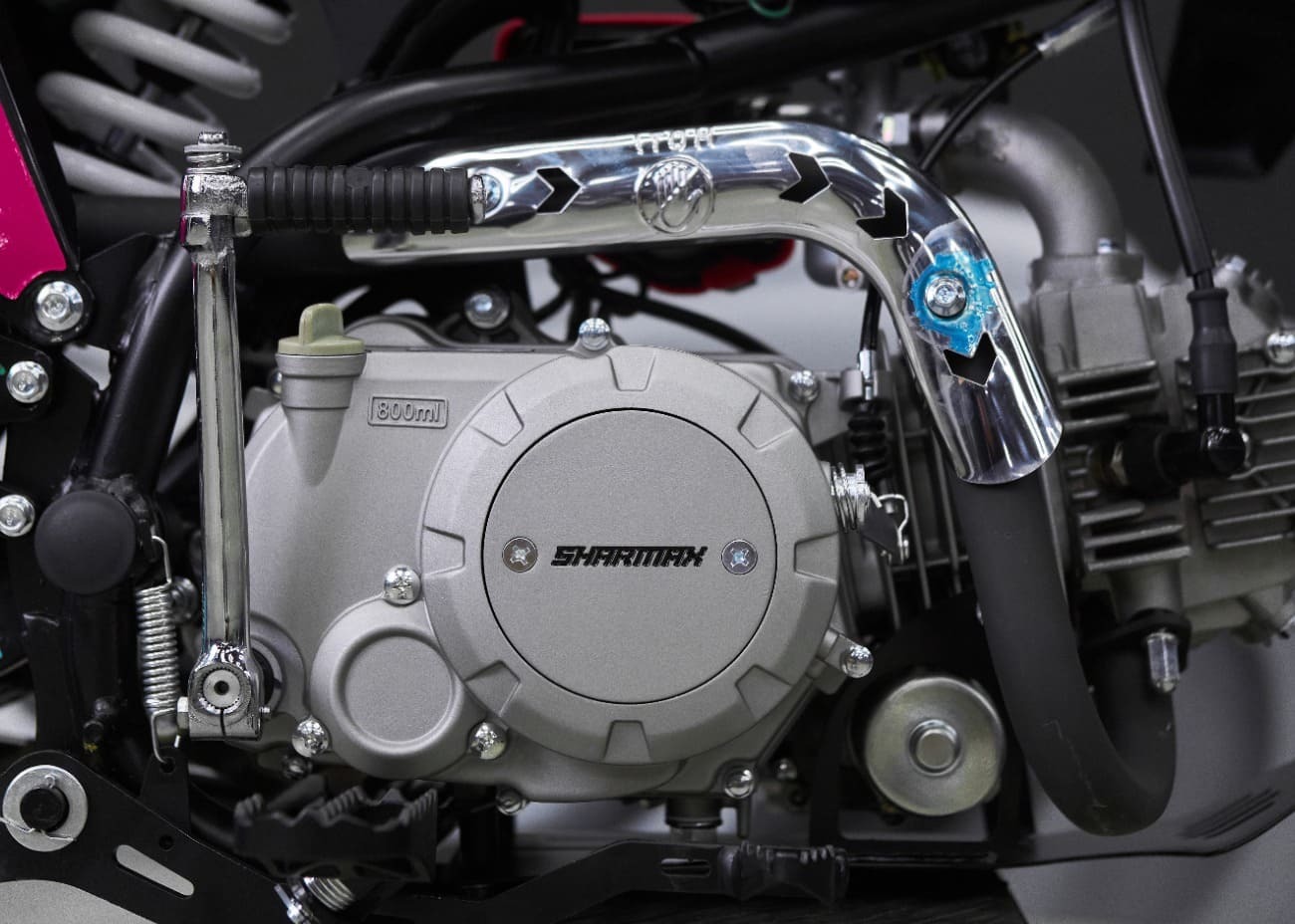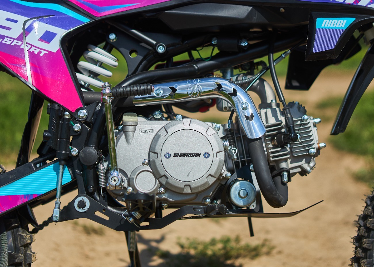 Питбайк оснащён сбалансированным двигателем 1P56FMJ-2, рабочим объёмом 140 кубов и мощностью 12 л. с. Поэтому мотоцикл отлично справляется с быстрым стартом и длительными поездками по бездорожью. Мини-мот оборудован механической 4-ступенчатой коробкой передач, которая обеспечит максимальную надёжность даже при очень активной эксплуатации в самых суровых условиях.