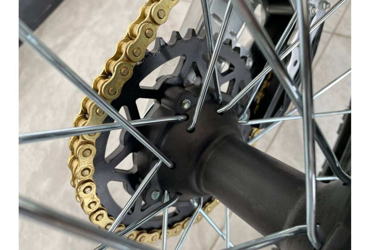 Особенности и дополнения: - электростартер и кикстартер - стальной маятник - алюминиевые обода - алюминиевая лапка переключения передач - складные рычаги тормоза и сцепления с регулировкой по усилию выжима и начального положения - толстостенный высокий руль PROTAPER со съёмной перекладиной - карбюратор NIBBI PE19 - короткоходная ручка газа NIBBI - ручки руля (грипсы) NIBBI - защита рук - светодиодная фара типа Husqvarna (ближний/дальний свет) - стальная защита двигателя - покрышки с развитыми грунтозацепами - влагозащищённые кнопки управления на руле - влагозащищённые разъёмы проводки - свеча NGK с силиконовым влагозащищённым колпачком - подходит для райдеров ростом 170-175 см, весом до 100 кг