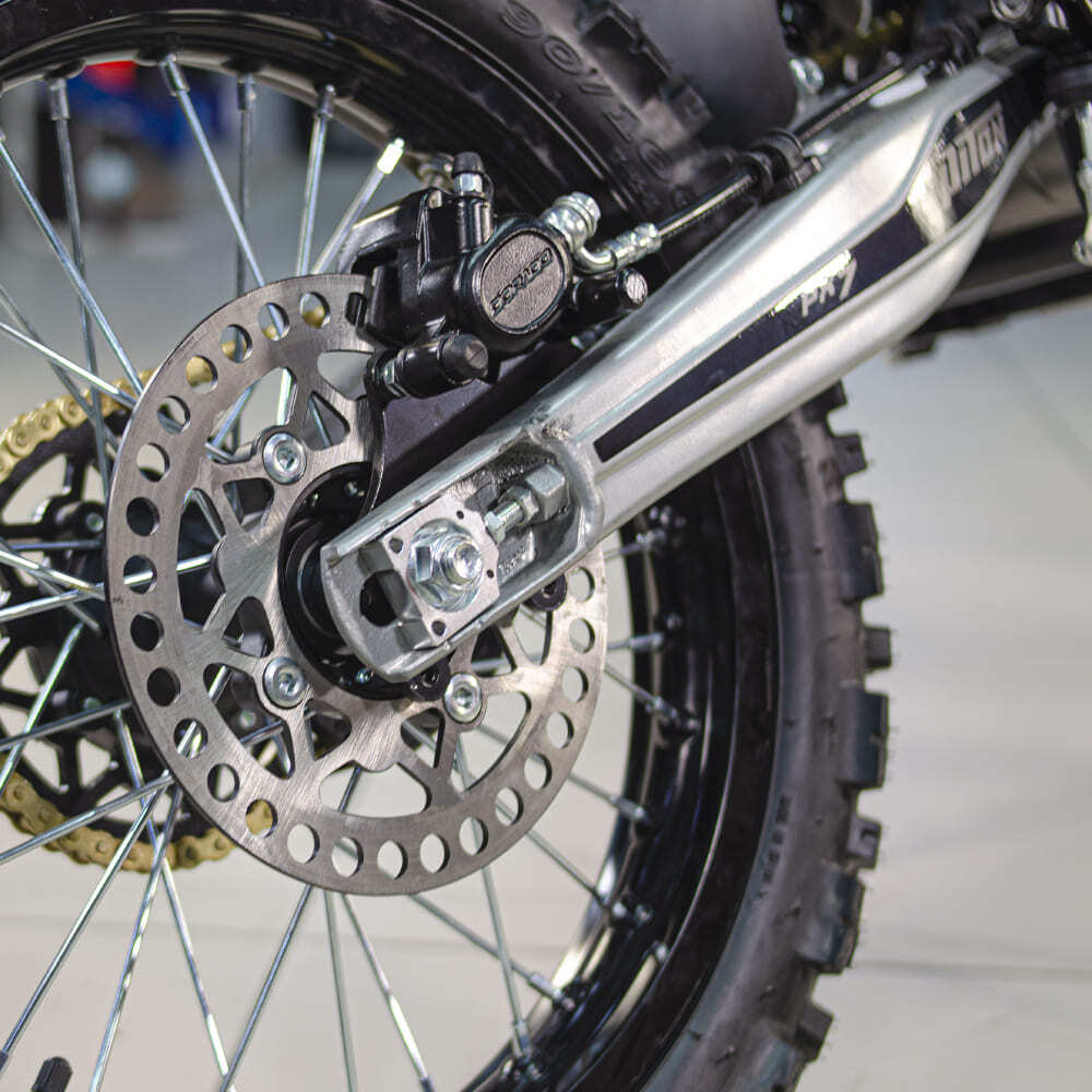 Особенности и дополнения: - электростартер и кикстартер - стальной маятник - алюминиевые обода - алюминиевая лапка переключения передач - складные рычаги тормоза и сцепления с регулировкой по усилию выжима и начального положения - толстостенный высокий руль PROTAPER со съёмной перекладиной - карбюратор NIBBI PE19 - короткоходная ручка газа NIBBI - ручки руля (грипсы) NIBBI - защита рук - светодиодная фара типа Husqvarna (ближний/дальний свет) - стальная защита двигателя - покрышки с развитыми грунтозацепами - влагозащищённые кнопки управления на руле - влагозащищённые разъёмы проводки - свеча NGK с силиконовым влагозащищённым колпачком - подходит для райдеров ростом 170-175 см, весом до 100 кг