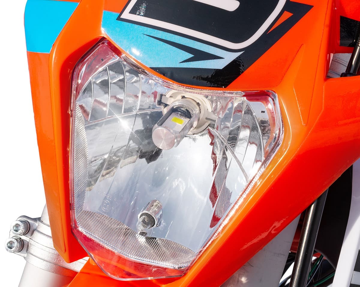 80% рамы сварены с помощью роботов. Все электрические соединения собраны на водонепроницаемых разъёмах. На питбайк установлен мягкий 2-х двухцветный пластик KTM 65 2019г.