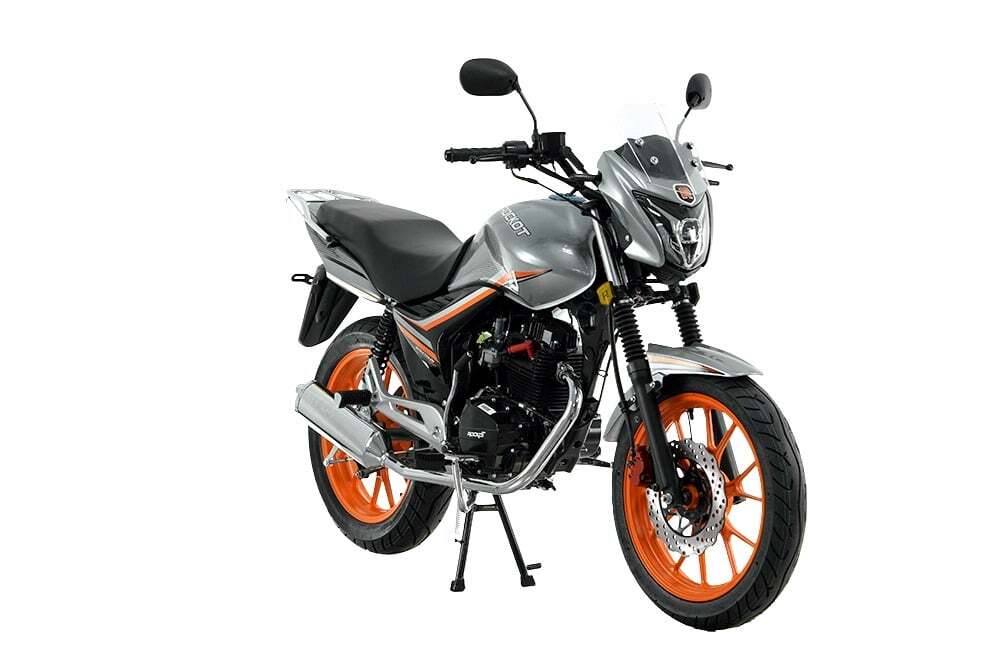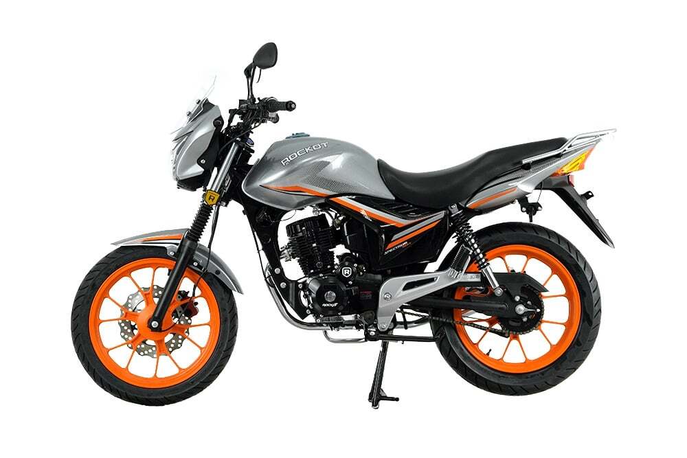 Мотоцикл ROCKOT SPECTRUM 150 - это малокубатурный дорожный мотоцикл, идеально вписывающийся в городскую среду, способный подарить массу положительных эмоций от управления им. Дизайн Дизайн мотоцикла ROCKOT SPECTRUM 150 - это уже устоявшийся, типичный облик практичного городского байка. Плавные линии, слегка округлые формы, выражают дань уважения к стилистике дорожных мотоциклов начала нулевых годов, которые несомненно популярны и по сегодняшний день. Основным дизайнерским отличием от мотоциклов современной школы, можно считать большой топливный бак и широкое, очень мягкое сиденье. Литые колесные диски, придают больше стабильности и подчеркивают именно городскую направленность дизайна. Большой, хромированный глушитель, не дает забыть о том, что это городская классика, но все же созданная на современный лад, на что также указывает и новая светодиодная фара головного света. Мотоцикл поставляется в трех цветовых вариантах: красный с черными колесными дисками, черный и серый на оранжевых колесных дисках. Двигатель В качестве двигателя, здесь установлен CG150 162FMJ с нижним расположением распредвала. Рабочий объем данного двигателя - 149 см³, а мощность - 11 лошадиных сил. Нижневальная конструкция двигателя отлично себя зарекомендовала на дорожных мотоциклах и именно поэтому, до сих пор так популярна. Диапазон мощности и крутящего момента равномерно распределен от низких до высоких оборотов и свои максимальные характеристики он показывает именно “на верхах”. Система охлаждения - воздушная, что делает двигатель очень надежным и простым в эксплуатации. Коробка передач - пятиступенчатая, с многодисковым сцеплением. Привод осуществляется через усиленную цепь, с шагом 428. Топливная система За образование топливной смеси и ее подачи в двигатель, отвечает карбюратор PZ27 с ускорительным насосом. Карбюратор этого типа, благодаря своей конструкции исключает возможность “провала” при резком открытии дроссельной заслонки, что обеспечит Вам максимально быстрый и ровный старт с места, или резкое ускорение с хода. Рычаг обогатителя (подсос) расположен на руле. Двигатель очень экономичен, а необычайно большой топливный бак, объемом 18 литров, позволит проезжать расстояния до 500 км без дозаправок. Рама Рама мотоцикла ROCKOT SPECTRUM 150 - трубчатая, стальная, где сам двигатель является частью конструкции рамы. Это довольно распространенная компоновка среди дорожных мотоциклов, что позволяет повысить управляемость мотоцикла, а также сделать его более легким. Масса мотоцикла, всего 120 килограмм, что делает его одним из самых легких байков среди “одноклассников”. Колесная база в 1300 см, обеспечивает наилучшую управляемость и гарантирует отличную маневренность в условиях высокого городского трафика. Высота по седлу - 800 мм, позволит комфортно и уверенно чувствовать себя даже невысоким мотоциклистам, а клиренс в 230 мм - даст вам возможность проезжать невысокие препятствия встречающиеся как в городе, так и за его пределами. Подвеска Спереди установлена телескопическая вилка классического типа, с диаметром рабочего штока - 31 мм, а длина - 720мм. Стоит отметить, что это весьма внушительные характеристики, среди других, легких городских мотоциклов. Задняя подвеска маятникового типа с двумя амортизаторами. Задние амортизаторы имеют регулировку преднатяжения пружины, благо