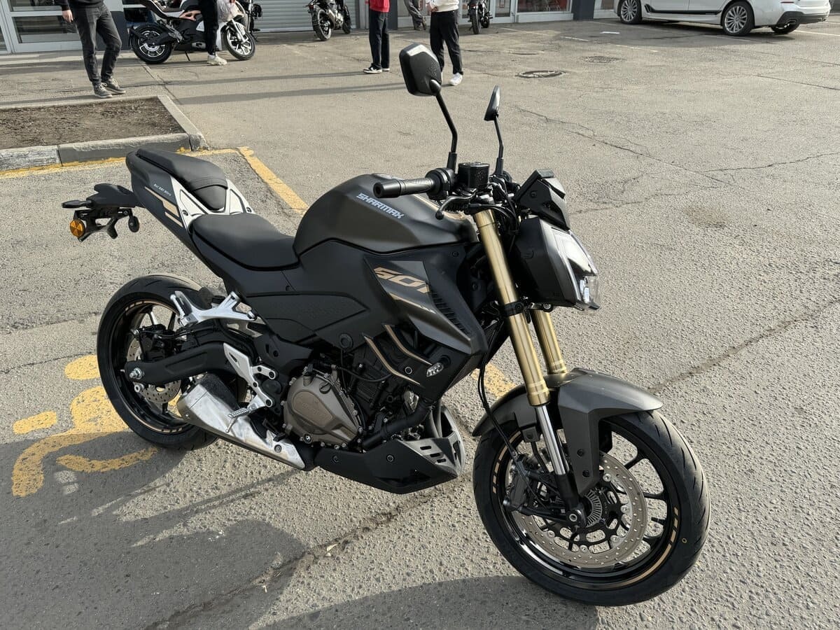 Цена на данный товар указана с условием покупки по предзаказу. Условия покупки по предзаказу: необходимо оплатить 100%ную предоплату, ожидание поставки товара - от 90 дней. РРЦ по данному товару указана в виде зачеркнутой цены. Подробности уточняйте у вашего персонального менеджера. Класс Naked — спортивные мотоциклы без ветрового стекла и пластикового обвеса, у которых хорошо видны рама и двигатель. Никаких лишних деталей, только скорость, драйв и азарт. Благодаря своему спортивному дизайну, Sharmax RST 501 является одним из самых стильных нейкед-байков для начинающих и продолжающих мотоциклистов. Это мотоцикл с мощным двигателем, компактным шасси с алюминиевой рамой deltabox, идеальной эргономикой, спортивным сиденьем и отличной управляемостью. Агрессивный стиль сочетается с передовыми технологиями и качественными компонентами. RST 501 предлагает максимальное удовольствие от вождения, независимо от того, едете ли вы в плотном городском потоке или по извилистым просёлочным дорогам. Двигатель Четырехтактный двигатель объемом 449 куб. см обеспечивает максимальную мощность 53,2 л.с. RST 501 проворно разгоняется на каждом повороте и, таким образом, позволяет быстро ездить по городу и пересечённой местности. Инжектор Обеспечивает более экономичный расхода топлива, стабильную работу двигателя и снижение токсичности выхлопов благодаря точной дозировке топливно-воздушной смеси. Характеристики Обладая вместительным баком объёмом 14,8 литров, RST 501 обеспечит вам длительный пробег, чтобы добраться до места назначения. Благодаря колёсной базе 1380, высоте сиденья 785 мм и весу всего 173 кг, управление этим мотоциклом не составит труда даже для новичков. Панель приборов Чёткий, легко читаемый, современный TFT-дисплей RST 501 предоставляет все необходимые данные. Он отображает текущую скорость, обороты, счетчик пробега, емкость бака, время в пути и включает в себя индикатор положения передачи. В дневном/ночном режиме дисплей автоматически подстраивается под окружающее освещение. Разъемы USB A и USB C также встроены. Гарантия и сервисное обслуживание Одна из главных особенностей техники Sharmax — продолжительная гарантия — целых 3 года. Все мотоциклы Sharmax имеют международную сертификацию ISO-9001, которая подразумевает двухуровневый контроль качества деталей и сборки техники. По возникшим вопросам по техническому обслуживанию вы можете обратиться к персональному менеджеру, а также к сотрудникам официального сервисного центра Sharmax.