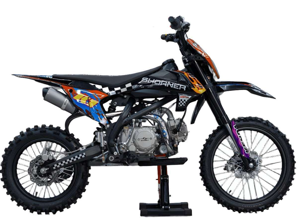 Дебютная модель Shorner K1: питбайк, который перевернёт ваше представление об экстремальном катании! Ищете надёжный и манёвренный питбайк для гонок на бездорожье? Shorner K1 — именно то, что вам нужно! Модель создана, чтобы покорить сердца любителей экстрима всех возрастов. С Shorner K1 вы сможете испытать настоящий азарт и получить максимум удовольствия от каждой поездки, не беспокоясь о безопасности. Чем вас удивит Shorner K1? Этот питбайк сочетает в себе мощный двигатель, удобную систему запуска, точную систему управления, комфортную подвеску и прочную конструкцию. Рассмотрим ключевые особенности подробнее: -Невероятная мощность и надёжность. Двигатель Sharmax объёмом 150 см³ и мощностью 13 л. с. (модель 1P56FMJ) с воздушным охлаждением и карбюратором PZ27 обеспечит стабильную работу в любых условиях. Эта модель установлена на сотнях топовых байков и уже не раз доказал свою надёжность. С таким «сердцем» питбайк легко справится с самыми сложными трассами. -Удобство в использовании. Выбирайте, как запустить питбайк — с помощью электростартера или кикстартера. Теперь начало поездки будет максимально комфортным! -Полный контроль над ситуацией. Механическая коробка передач с режимами N-1-2-3-4 позволит вам точно управлять скоростью и динамикой движения. На любой трассе вы будете чувствовать себя уверенно и спокойно. -Комфорт даже на сложных участках. Подвеска с ходом 170 мм (передняя) и 200 мм (задняя) сделает поездку мягкой и плавной. А возможность регулировки преднатяга пружины задней подвески позволит адаптировать питбайк под ваш стиль езды. -Долговечность и устойчивость к нагрузкам. Рама и маятник из хромомолибденового сплава, обода из стали — всё это гарантирует, что Shorner K1 прослужит вам долго и не подведёт даже в самых суровых условиях. Технические детали, которые вас впечатлят: -длина — 1770 мм, ширина — 760 мм, высота — 1120 мм; -высота по седлу — 850 мм, колёсная база — 1210 мм, дорожный просвет — 320 мм; -вес — всего 85 кг; -покрышки: передняя — 70/100/17, задняя — 90/100/14; -объём топливного бака — 4,5 л; -есть фара и стальная защита двигателя. Shorner K1 подойдёт как новичкам, так и опытным райдерам. А гарантия на 1 год подтверждает высокое качество питбайка. Не откладывайте своё приключение — выберите Shorner K1 и откройте для себя мир экстремальных покатушек уже сегодня!
