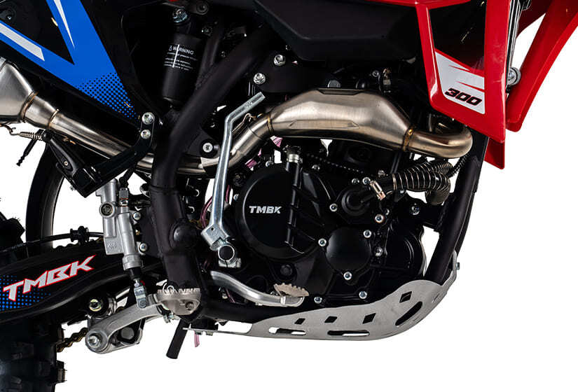 Сердце TMBK Kinetic 300 — надежный 4-тактный 300-кубовый двигатель ZS174MN-5 мощностью 31 л.с., оснащенный балансировочным валом. Благодаря небольшому весу в 118 кг, мотоцикл разгоняется до 140 км/ч. 174-й мотор с водяным охлаждением справится с любыми нагрузками и не перегреется даже в самый жаркий день, когда двигатель работает на максимальных оборотах. Заводская защита картера надежно оберегает «брюхо» Kinetic от ударов камней и других сюрпризов бездорожья. Высокий клиренс в 320 мм защитит двигатель от попадания влаги при форсировании бродов.
