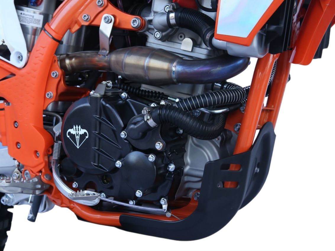Рама выполнена из прочной хромомолибденовой стали, что придает конструкции высокую устойчивость к нагрузкам и механическим повреждениям. Водяное охлаждение эффективно предотвращает перегрев даже при интенсивных нагрузках. Запуск двигателя осуществляется с помощью электростартера, а питает систему гелевый аккумулятор.