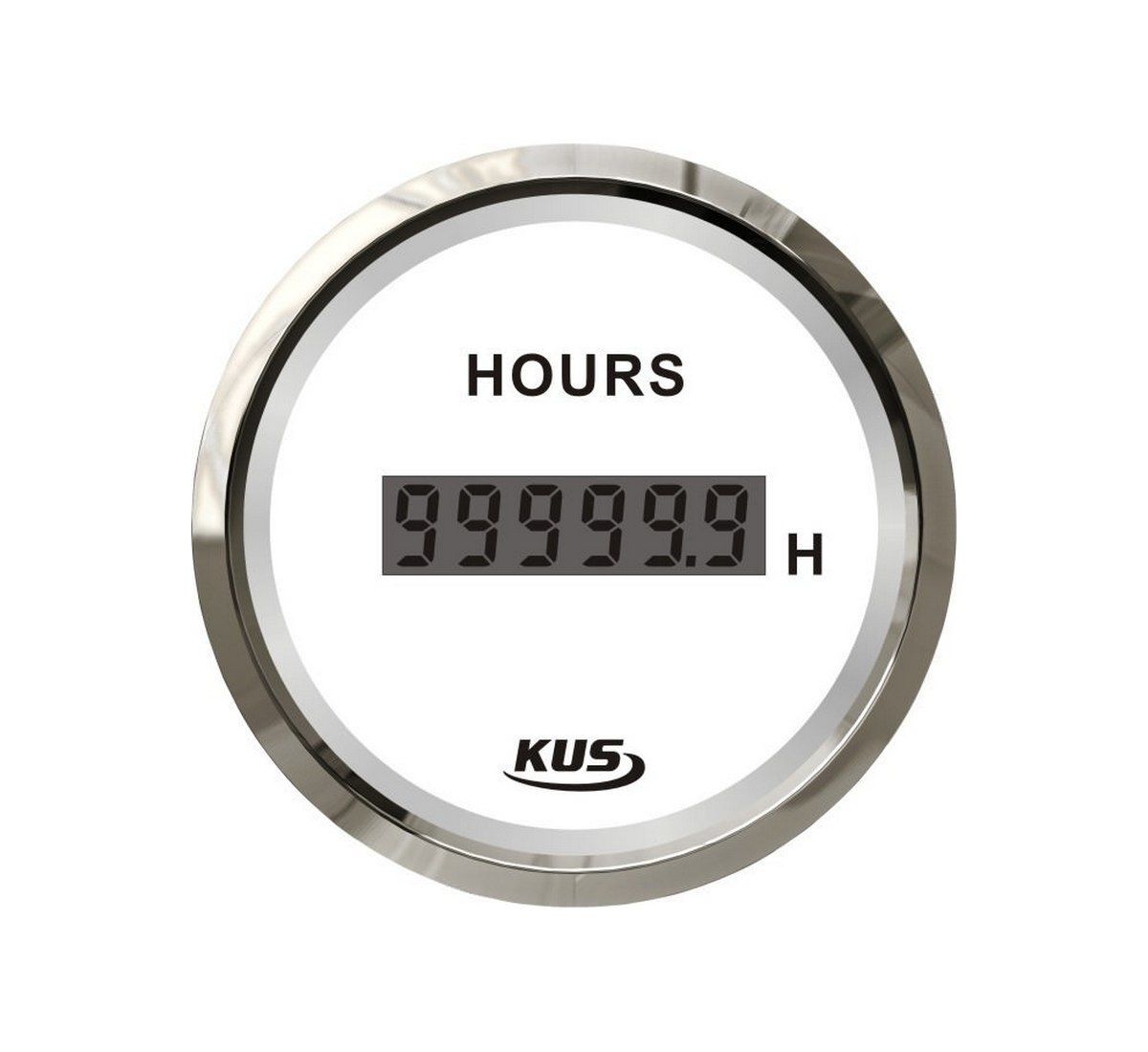 Цифровой счетчик моточасов белого цвета с нержавеющим ободком. Данный прибор предназначен для учета и контроля времени работы мотора.