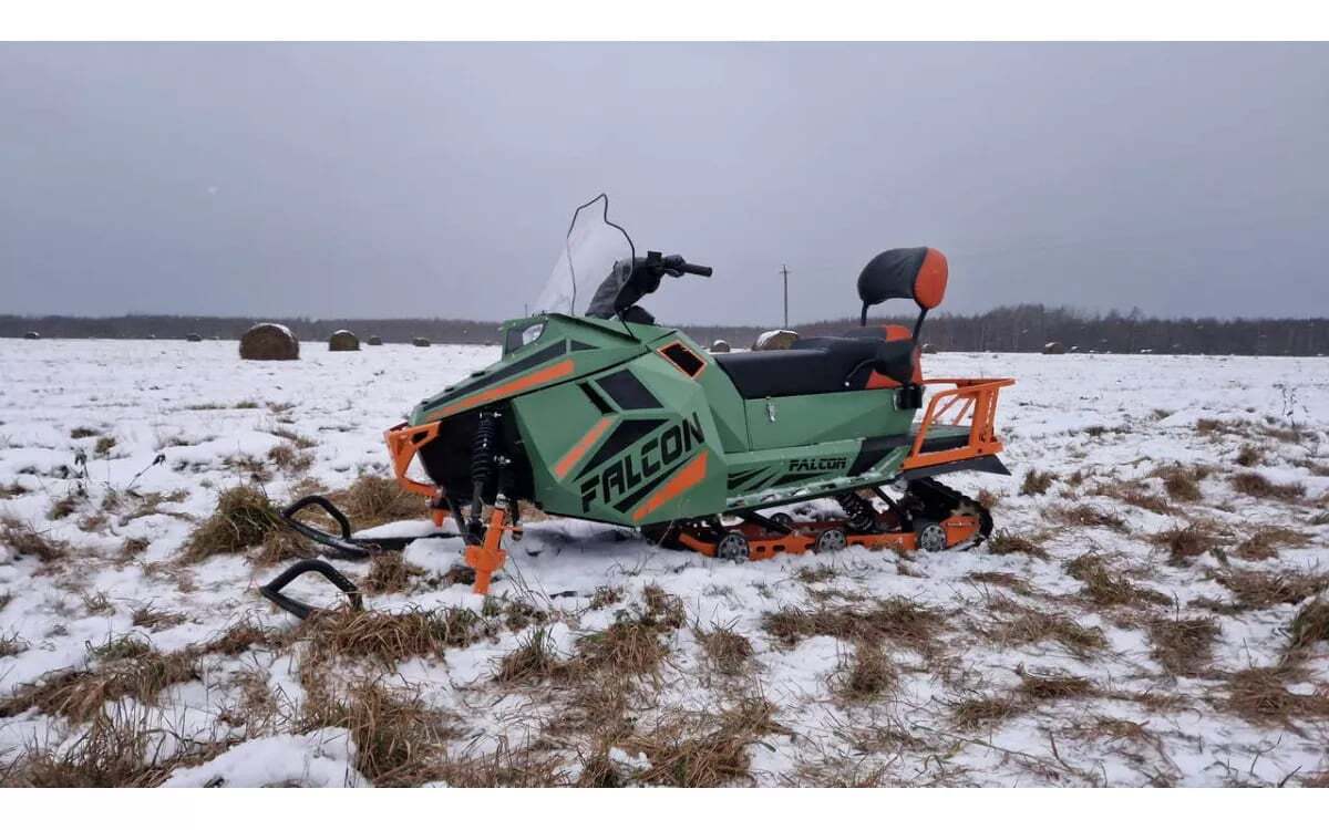 Конструктивные особенности снегохода FALCON: - Передняя рычажная подвеска с А-образным рычагом и регулировочной тягой, выполняющей роль верхнего рычага. Такая конструкция обеспечивает полный диапазон регулировок (сход и развал лыж). Точные регулировки обеспечат высокую управляемость, а гидравлический амортизатор обеспечит точную отработку неровностей и комфорт в движении. - Энергоемкая, но в то же время мягкая, двухамортизаторная склизовая задняя подвеска позволяет комфортно ехать, и одному пилоту, и пилоту с пассажиром. - Широкая линейка мощных двигателей от крупных китайских производителей: Lifan / Loncin от 20 до 30 л.с. - Максимальный комфорт водителя и пассажира благодаря новому двухуровневому сиденью на 2 пассажирских места. - Современная приборная цифровая панель. - Уровень комфорта при длительных поездках, соответствующий требованиям, предъявляемым к снегоходам туристического класса: двухместное сиденье со спинкой для пассажира, пассажирские ручки, упоры для ног пилота, широкие рифленые подножки, широкое и высокое ветровое стекло, подогревы ручек руля и курка газа, зеркала заднего вида. - Гидравлический тормоз, реверс и электростартер в базовой комплектации.
