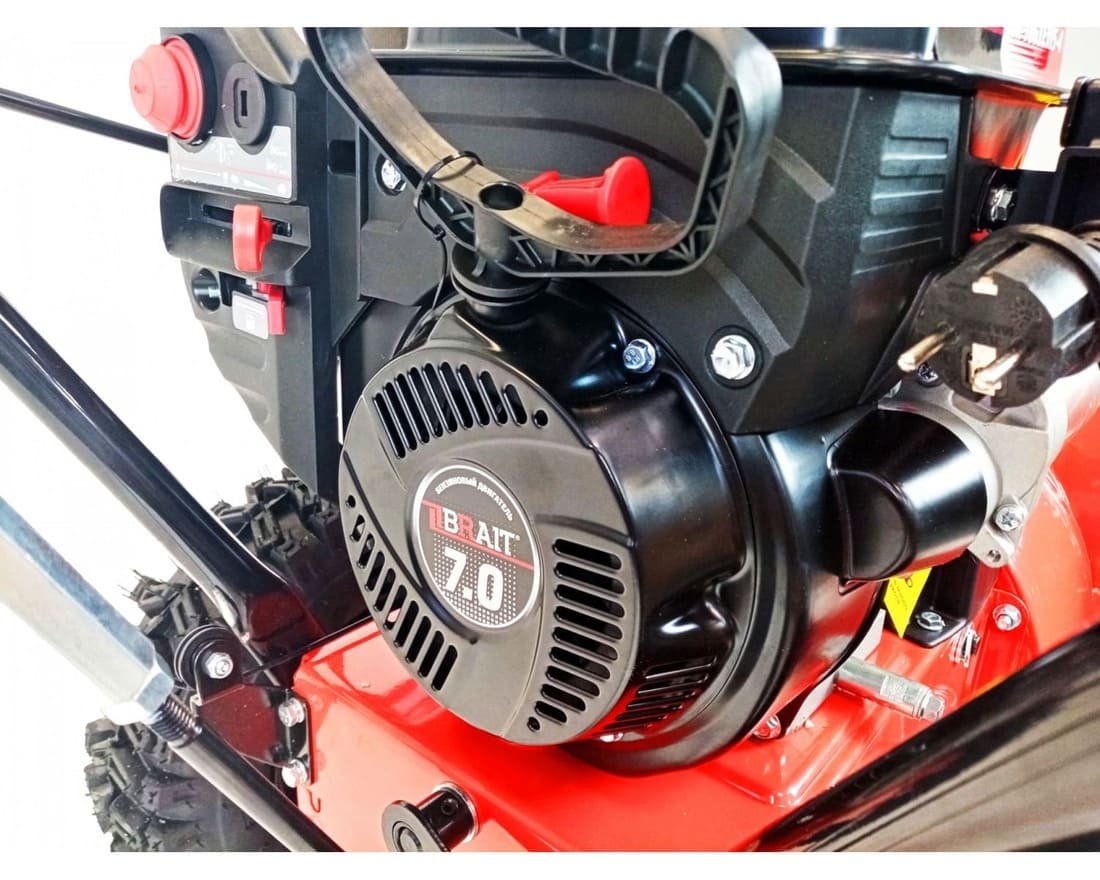 Снегоуборщик Брайт оборудован бензиновым двигателем мощностью 7 л.с. и объемом 196 кубов. С полным топливным баком на 4 литра он может работать около 1 часа без дозаправки. Кроме того, при производстве учитываются усовершенствования двигателей известных брендов, способствуя большей надежности и долговечности снегоуборочной техники.