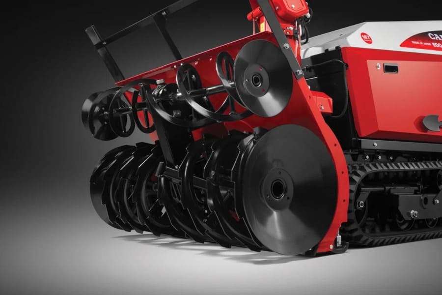 Гусеничные снегоуборщики CAIMAN Edo 48YD оснащены профессиональными двойными ленточными шнеками, изготовленными из высококачественной легированной стали. Шнек справляется с сугробами высотой 1 м. Режущая кромка шнеков имеет агрессивные зубья, которые с легкостью разрубают слежавшийся снег и ледяной наст.
