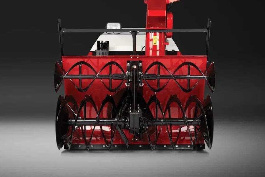 1 ступень – двойной ленточный шнек из высококачественной легированной стали, измельчающий и взбивающий снеговые массы, благодаря чему увеличивается дальность выброса снега и облегчается нагрузка на двигатель.