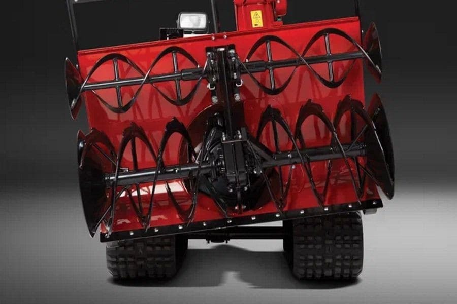1 ступень – двойной ленточный шнек из высококачественной легированной стали, измельчающий и взбивающий снеговые массы, благодаря чему увеличивается дальность выброса снега и облегчается нагрузка на двигатель.