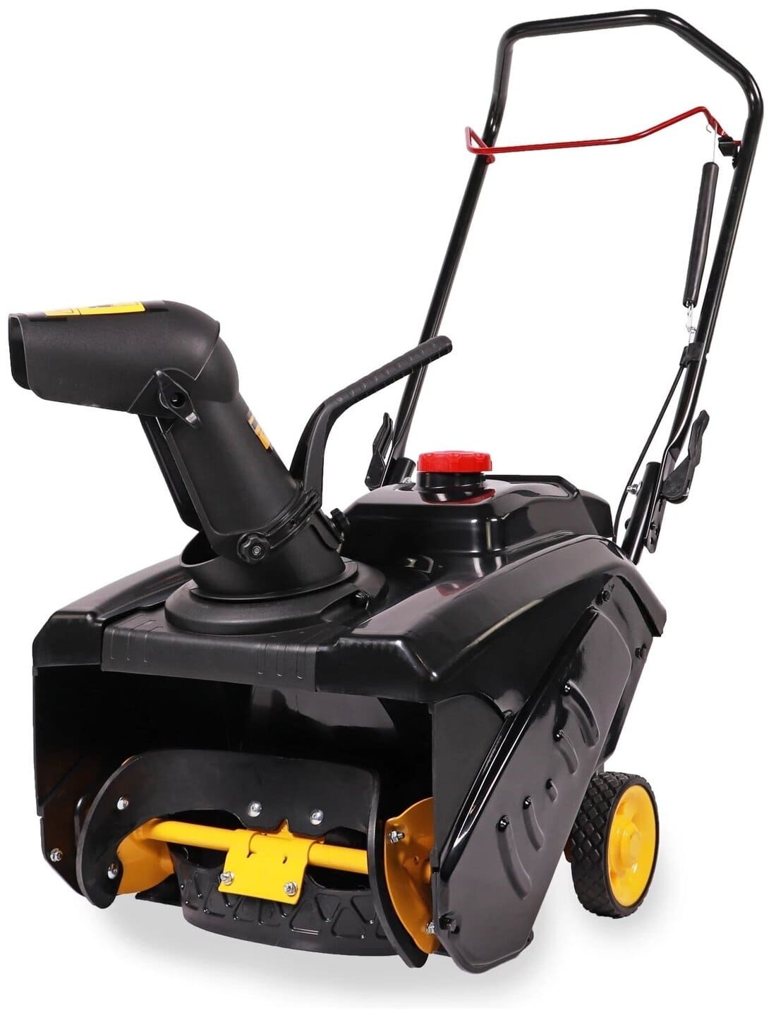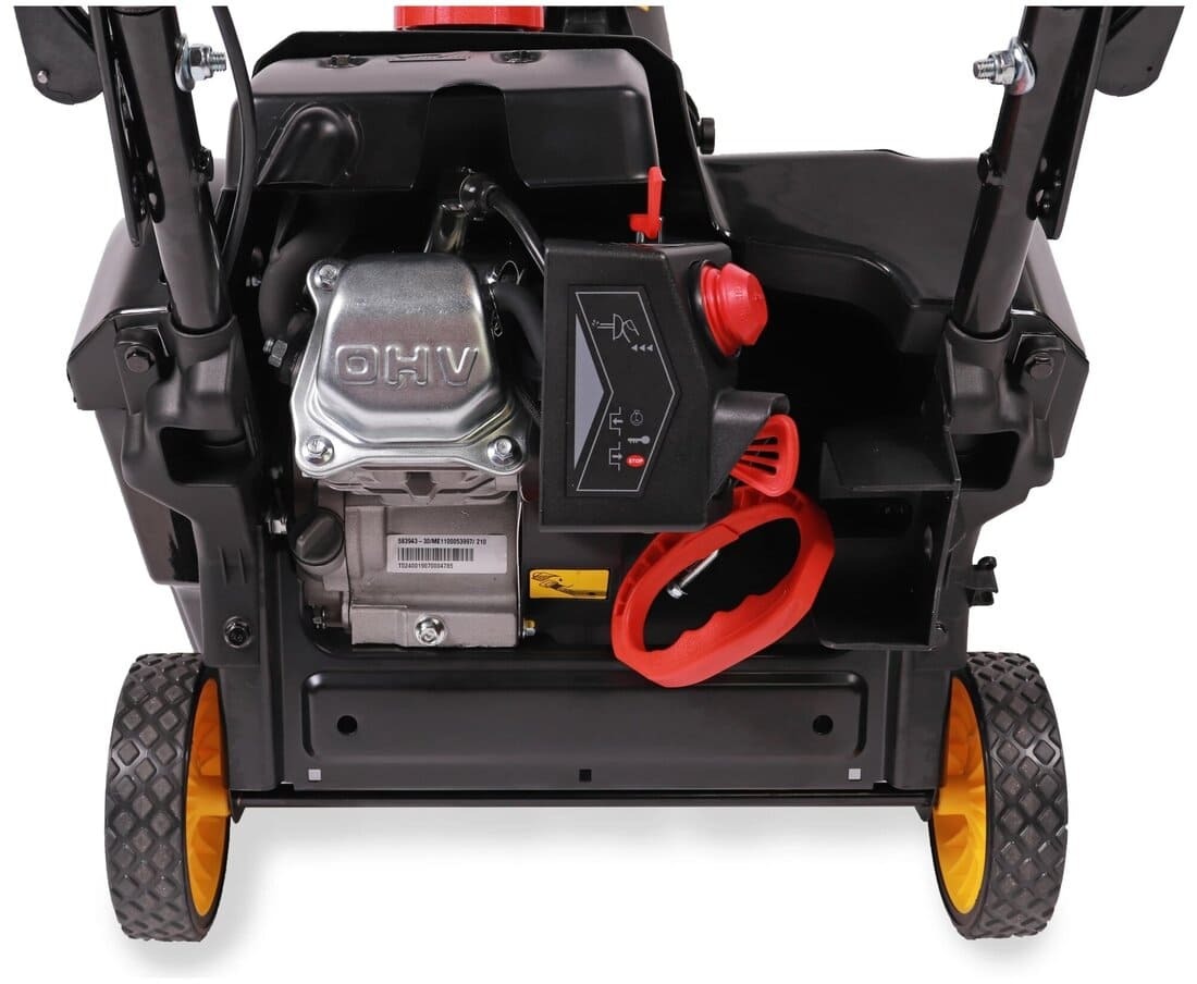 Снегоуборщик Champion ST246 оснащен одноцилиндровым фирменным 4-тактным двигателем мощностью 2,2 л.с. Благодаря верхнеклапанному расположению системы газораспределения силовой агрегат отличается экономичностью, стабильной работой, низким уровнем шума и вибрации. Запуск снегоуборщика производится ручным стартером. Для максимально простого запуска двигателя, он оснащен топливоподкачивающим насосом (праймером), который достаточно нажать три раза для запуска холодного двигателя. При запуске теплого двигателя использовать праймер нет необходимости. Снегоуборщик оборудован топливным баком, объем которого составляет 1.6 л. Данного объема будет достаточно для продолжительной работы, без остановок на дозаправку. Заправляется топливный бак бензином марки АИ-92. Снегоуборочная машина Champion ST246 способна за один проход убрать дорожку снега шириной 46 см, этого достаточно для легкого маневрирования на узких дорожках и быстрой очистки пространства. Желоб для выброса снега не подвержен налипанию снега, его положение можно менять, поворачивается желоб на 190 градусов. Не рекомендуется уборка снега на склонах с углом более 15°.