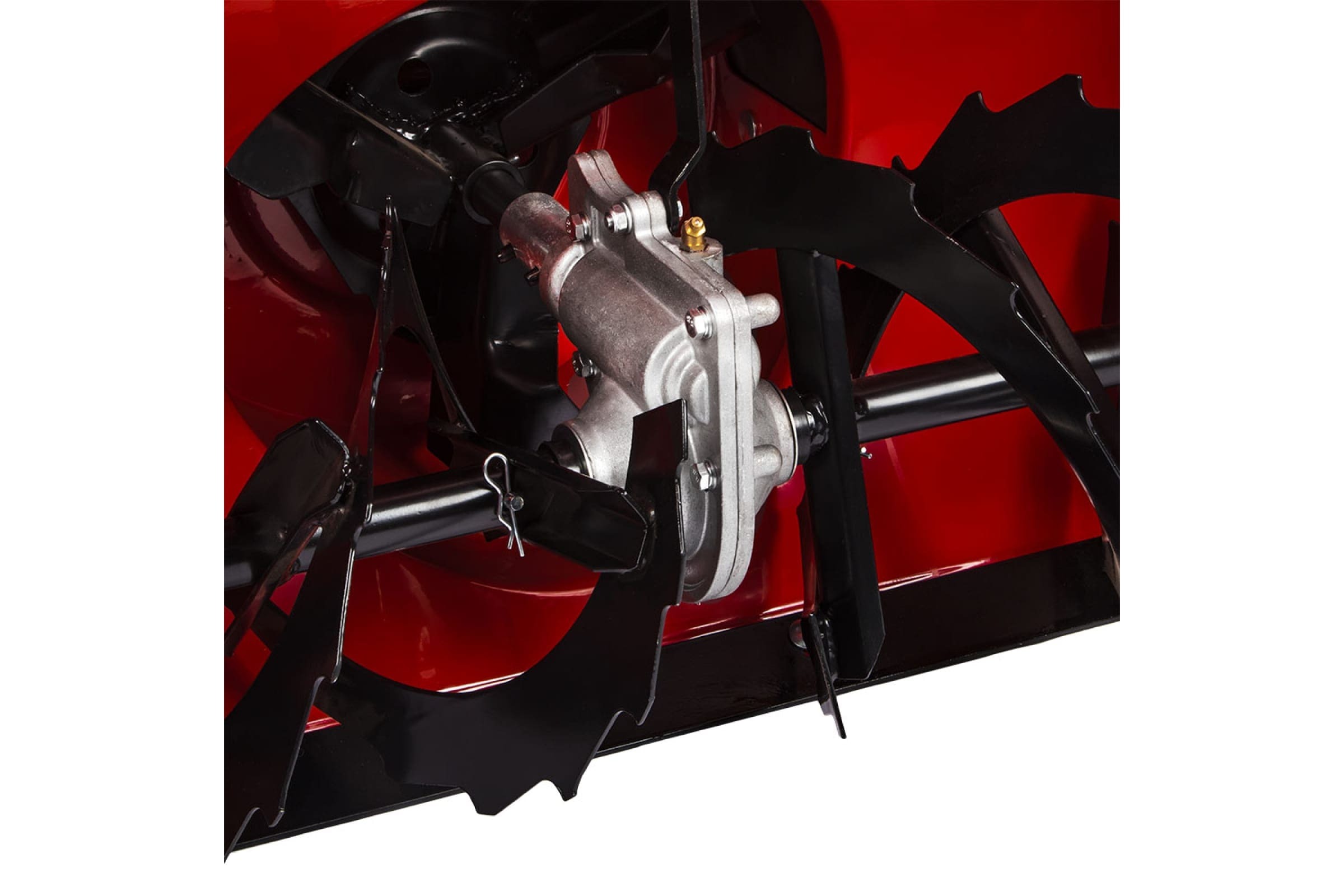 - Стальной шнек. Снегоуборочная машина оснащена специальным шнеком с зубчиками, который позволяет справиться даже с залежавшимся снегом на большой и маленькой территории. Обладает многоступенчатой системой очистки.