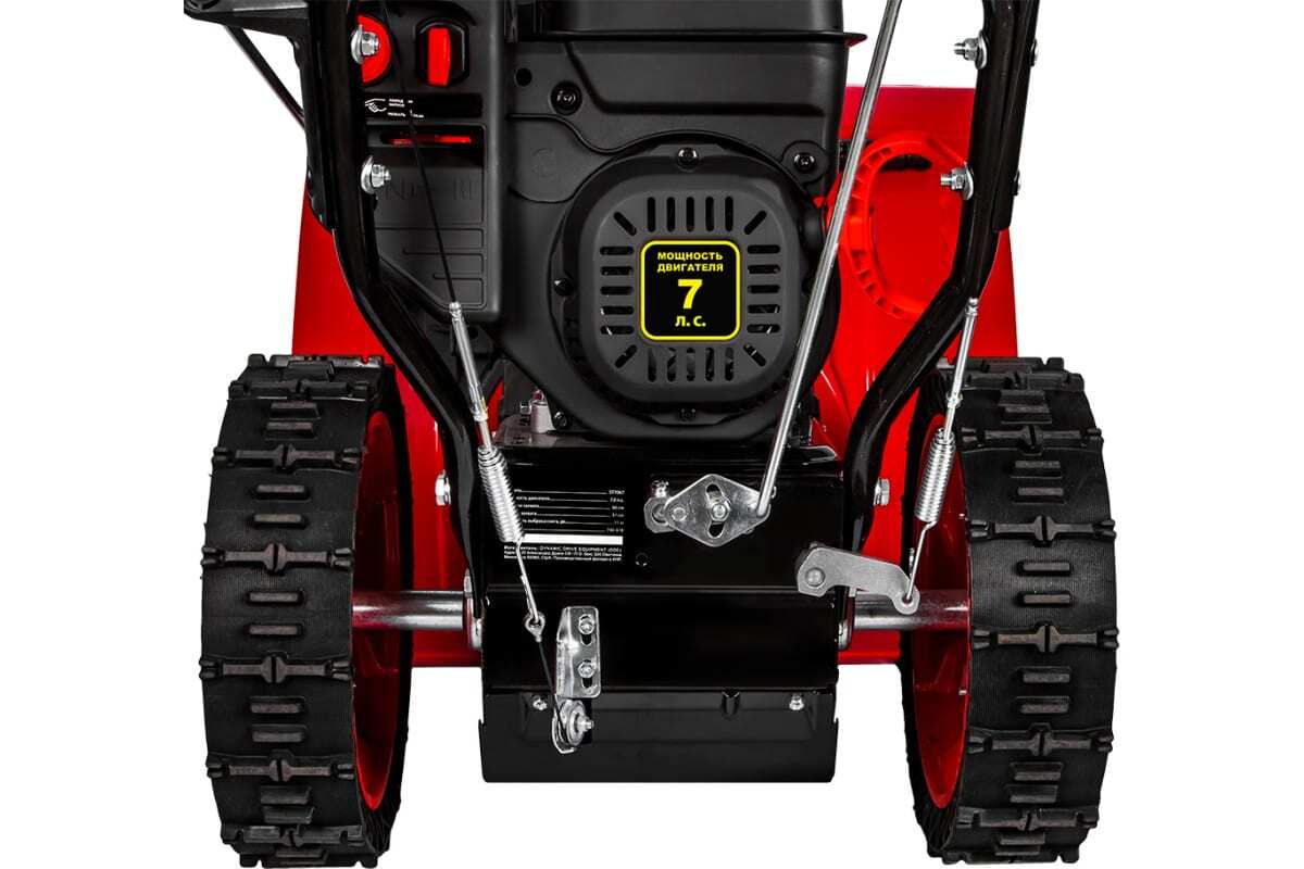 Агрегат работает от четырехтактного бензинового двигателя мощностью 7 л.с., объемом 212 куб. см. Мотор запускается вручную или с электростартера. Кроме того, он вобрал в себя все улучшения двигателей мировых моделей снегоуборщиков, а потому гарантирует долговечность работы.
