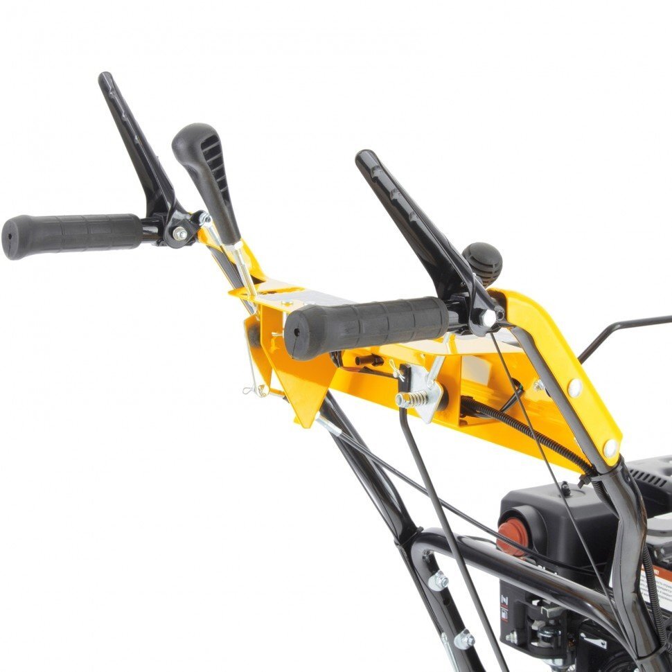 - Регулировка направления и дальности выброса снега повышает удобство эксплуатации и эффективность рабочего процесса.