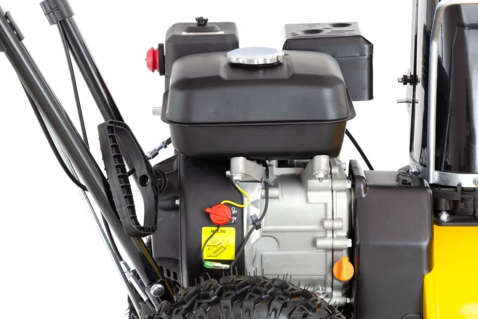 Бензиновая снегоуборочная машина Denzel GSB-53 предназначена для уборки снега с ровной открытой поверхности с твердым покрытием: в парке, на улице, возле дома или магазина, на парковках. Двигатель мощностью 6,5 л.с. обеспечивает быструю и эффективную расчистку с шириной прохода 51 см и дальностью выброса до 11 м. Снегоуборщик выполнен в ярком черно-желтом дизайне, поэтому будет заметен на дороге даже в метель.Преимущества:4 скорости вперёд и одна назад обеспечивают настройку оптимальной скорости движения под любые условия и маневренность в узких пространствах. Ковш высотой 53 см позволяет убирать даже высокие сугробы. Шины с глубоким протектором Snow Hog позволяют уверенно двигаться по заснеженным дорогам. Колеса увеличенного размера 13х4, 10-6 см обеспечивают легкую уборку снега на любой территории. Прочный металлический желоб выброса отличается высокой прочностью и устойчивостью к повреждениям. Особенности и преимущества: - Двигатель 6.5 л/с; - 4 скорости для движения вперед, 1 назад; - Желоб из стали; - Регулировка дальности и направления выброса; - Самоходный привод; - Регулировка полозьев по высоте.
