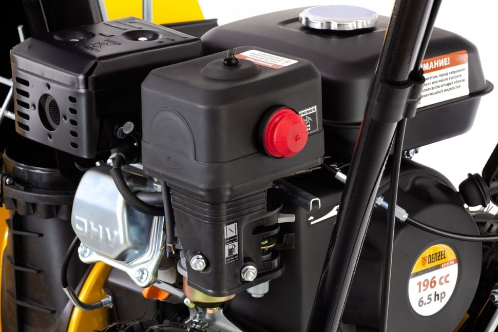 Бензиновая снегоуборочная машина Denzel GSB-53 предназначена для уборки снега с ровной открытой поверхности с твердым покрытием: в парке, на улице, возле дома или магазина, на парковках. Двигатель мощностью 6,5 л.с. обеспечивает быструю и эффективную расчистку с шириной прохода 51 см и дальностью выброса до 11 м. Снегоуборщик выполнен в ярком черно-желтом дизайне, поэтому будет заметен на дороге даже в метель.Преимущества:4 скорости вперёд и одна назад обеспечивают настройку оптимальной скорости движения под любые условия и маневренность в узких пространствах. Ковш высотой 53 см позволяет убирать даже высокие сугробы.