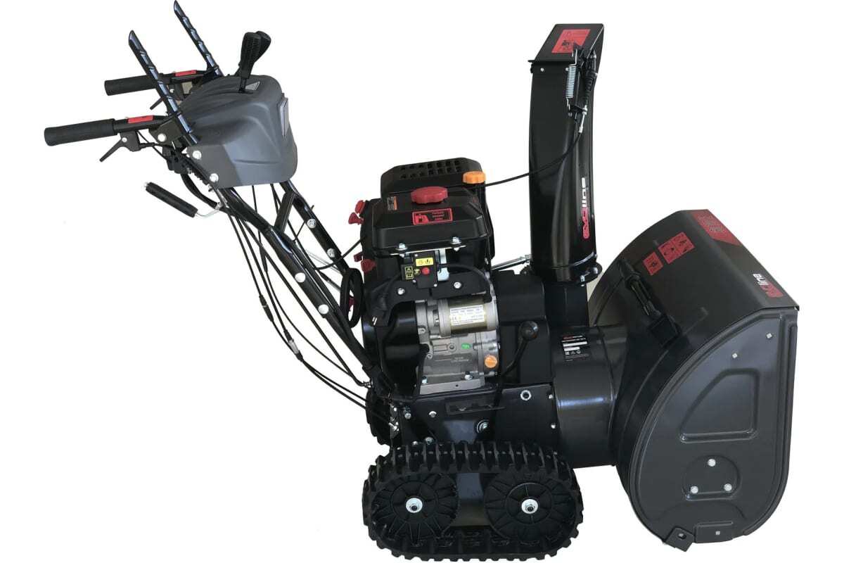 Снегоуборщик имеет 2-ступенчатый тип выброса снега, что обеспечивает дальнюю и точную выброску, повышая производительность. Удобство использования обеспечивается как электрическим, так и ручным стартером. Гусеницы гарантируют легкость и маневренность на разных поверхностях. Трансмиссия с фрикционным диском предлагает 6 скоростей вперед и 2 назад, что позволяет адаптироваться к условиям.