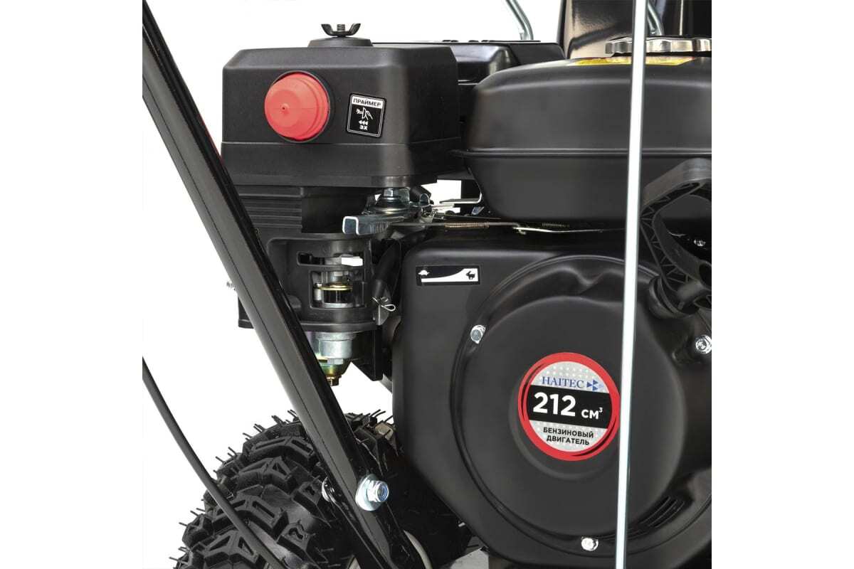 Снегоуборочная машина Хайтек оснащена бензиновым двигателем с воздушным охлаждением мощностью 6,5 л.с. и объемом 212 куб. см. Этот мотор обеспечивает высокую производительность, что позволяет эффективно очищать снег на различных поверхностях и территориях.