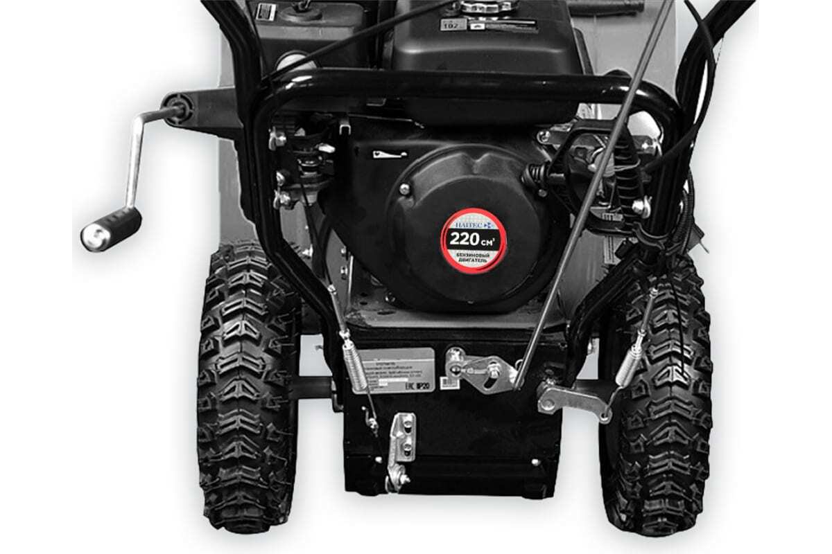 Снегоуборочная машина Хайтек оснащена бензиновым двигателем с воздушным охлаждением мощностью 8 л.с. и объемом 220 куб. см. Этот мотор обеспечивает высокую производительность, что позволяет эффективно очищать снег на различных поверхностях и территориях.