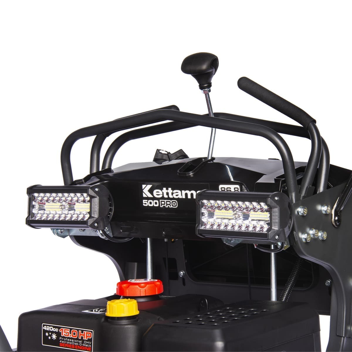 Kettama 500 Pro способен убирать не только обычный снег, но и максимально плотный мокрый снег с элементами льда, плотностью до 700-800 кг/м3. Снегоуборщик оснащён инновационной системой дифференциала с ЭБУ, позволяющей делать нулевой радиус разворота. Серия снегоуборщиков Pro предназначена для уборки территорий торговых центров, спортивных и туристических баз, санаториев и домов отдыха, парков, фермерских хозяйств, загородных коттеджей.