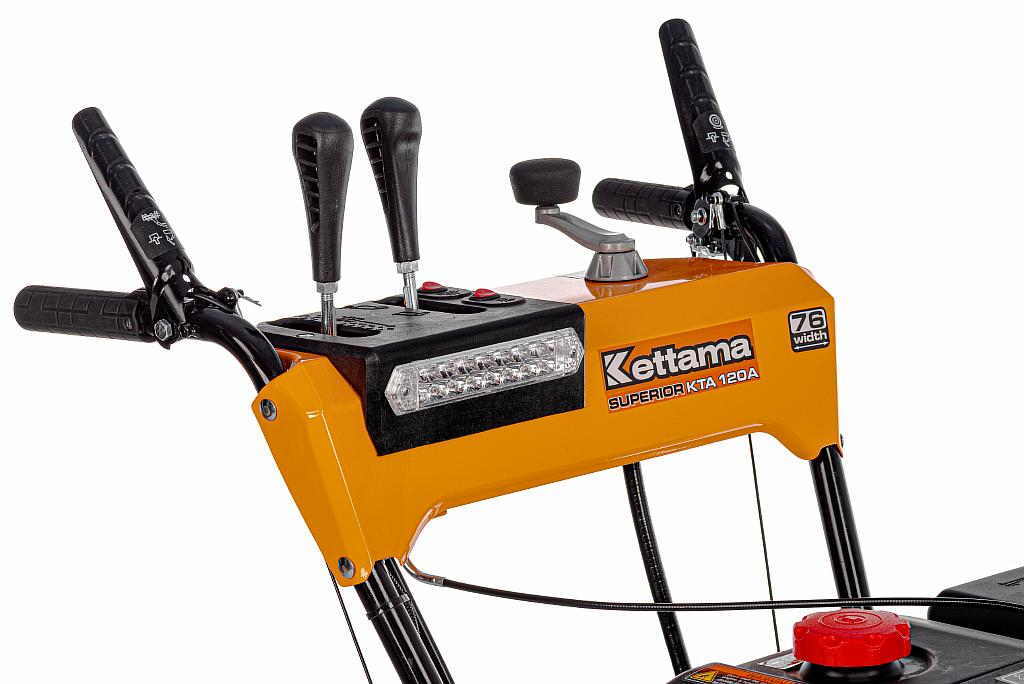 Эта модель идеально подойдёт для тех, кто содержит собственный дом с небольшой территорией, но не хочет тратить много времени на очистку её от снега. Мощный и манёвренный снегоуборщик Kettama Luxe KTA120-A превратит этот когда-то длительный и утомительный процесс в гонку. Мощный 300-кубовый двигатель и широкий ковш позволяют перерабатывать большие объёмы снега, вне зависимости от его вида. Подогрев ручек, LED фара и панель управления на руле, вместе с регулируемой трубой выброса, дадут Вам понять, что даже во время чистки территории можно ощущать комфорт!