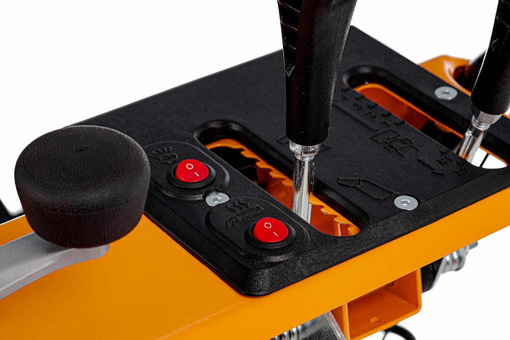 Простая и интуитивно понятная панель управления обеспечивает полный контроль над снегоуборщиком и всеми его функциями. От скорости, до дальности выброса снега.