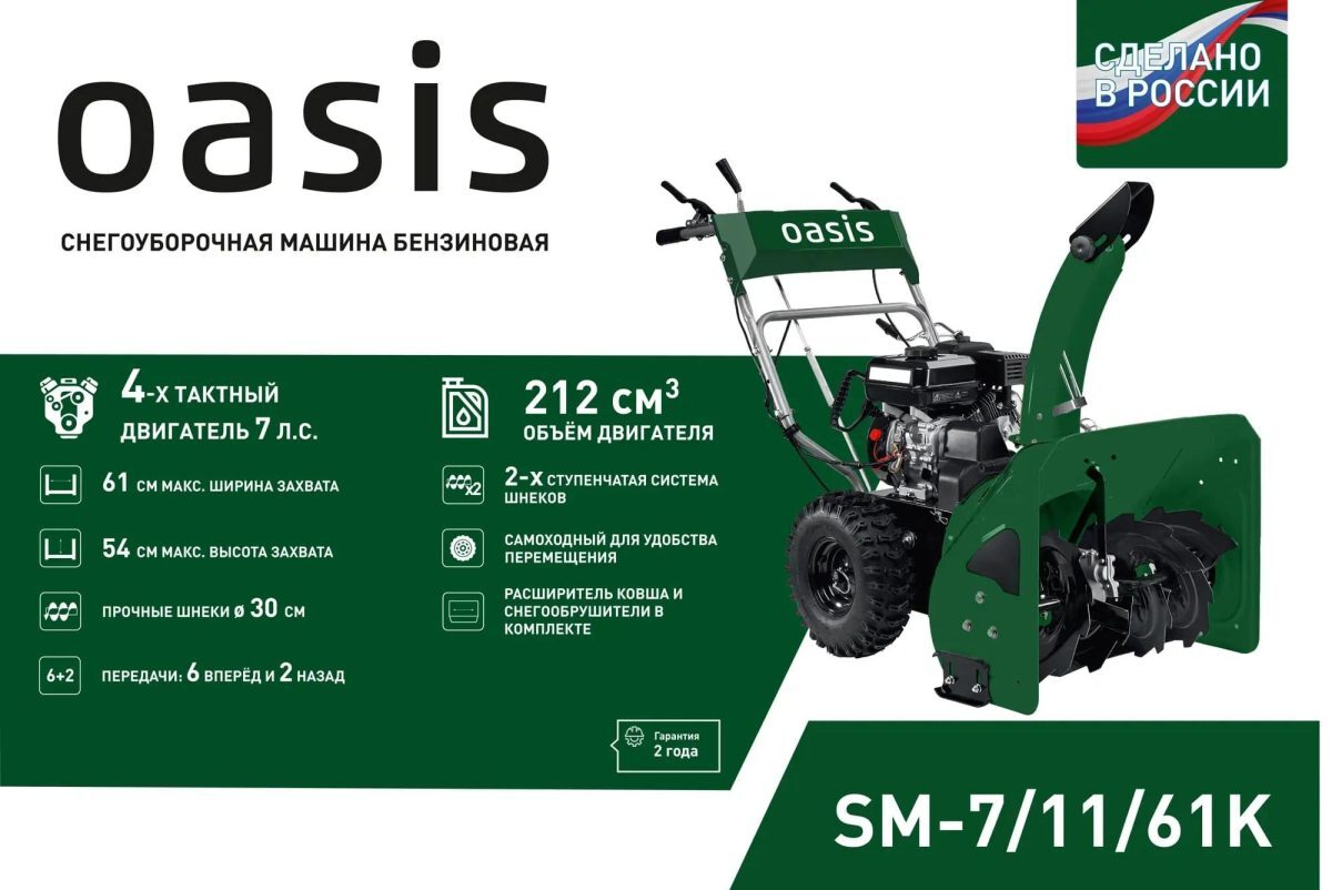 Снегоуборщик OASIS SM-7/11/61K – купить за 41 120 ₽ | Зимний Арсенал