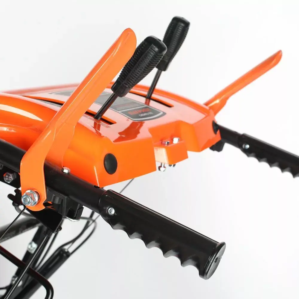 Снегоуборщик мощностью 6,5л.с. имеет все необходимое для комфортной работы: электростартер для запуска в самые сильные морозы, фара для работы в темное время суток и большой диапазон регулировок скоростей, который позволит подстроиться под различные условия работы. В конструкции снегоуборщика используются только подшипники, а не втулки. Шестерня редуктора шнека выполнена из бронзы, что в десятки раз увеличивает ресурс снегоуборщика. На заводе производится регулировка и обкатка каждой единицы техники в собранном состоянии. Особенности модели: - Зубчатый металлический шнек. Снегоуборщик справляется с уборкой обледенелого и плотного снега. - 8 скоростей (6 вперед и 2 назад). Удобство перемещения снегоуборщика по территории. - Шестерня редуктора шнека выполнена из бронзы. Существенно увеличивает ресурс снегоуборщика. - Регулировка выброса. Угол и направление выброса снега настраивается специальным рычагом под панелью оператора. - Лопатка для прочистки желоба. Простой уход и обслуживание снегоуборщика. - Удобство управления. Все рычаги и кнопки сосредоточены на верхней консоли. - Грубый протектор шин. Обеспечивает надежное сцепление с поверхностью даже на обледенелых участках. - Светодиодная фара. Позволяет работать в темное время суток.