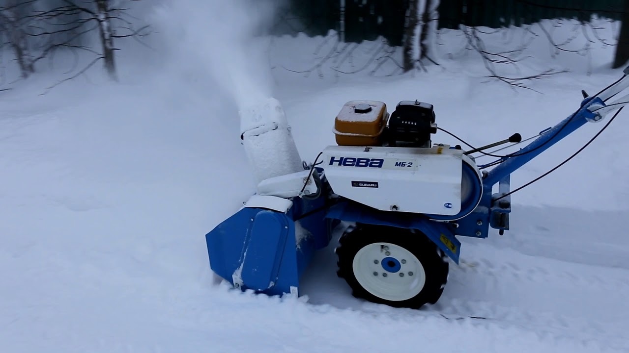 Снегоуборщик СМБ «Нева» оснащен шнеком с зубчатой кромкой, что позволяет эффективно перемалывать слежавшийся снег. Осадки выбрасывается на расстояние до 10 м, высота убираемого снега — до 25 см, ширина захвата составляет 64 см. Установка насадки на мотоблок проста, но для моделей «НЕВА» МБ1 и МК200 потребуются дополнительные запчасти, указанные в Руководстве по эксплуатации.