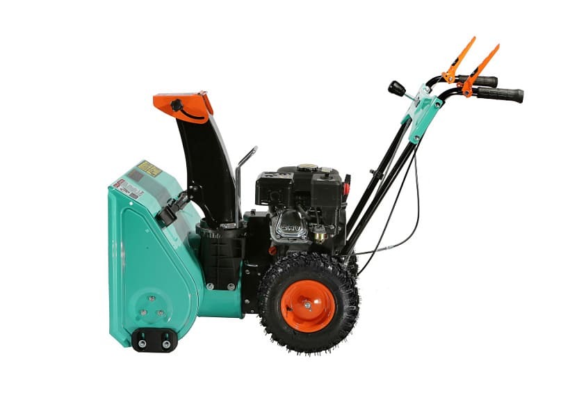 Высокая производительность машины обеспечивается не только мощным двигателем, но и продуманной конструкцией забора снега — этому способствует использование мощных агрессивных шнеков с большим профилем зуба, позволяющих легко справляться даже со слежавшимся снегом и настом, а также вместительного снегозагребного ковша, гарантирующего внушительную ширину прохода и возможность убирать сугробы до полуметра высотой. Снегоуборщик оснащен выпускным желобом, с регулировкой как по направлению, так и углу выброса, благодаря чему пользователь без труда может настроить оптимальное расстояние, на которое будет отбрасываться снежная масса. Максимальная дальность выброса достигает 11 метров. Для лучшего сцепления с поверхностью модель комплектуется специальными шинами с глубоким протектором.