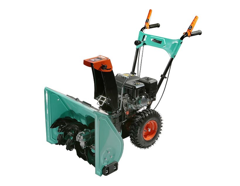 Бензиновый снегоуборщик Sturm! STG7461 Особенности: Надежный зимний двигатель марки ZONGSHEN с защитой от низкого уровня масла. Большой ковш 61*51 см с полозьями скольжения обеспечивает внушительную ширину прохода и позволяет убирать сугробы до полуметра высотой. Агрессивные шнеки диаметром 250мм легко справляются со слежавшимся снегом и настом. Набор скоростей: 4 вперед/1 назад, для настройки оптимальной скорости движения снегоуборщика. Удобный рычаг управления желобом снегоотбрасывателя всегда под рукой у пользователя для установки и изменения направления выброса снега. Большие пневматические колеса с зимним протектором для уверенного движения.
