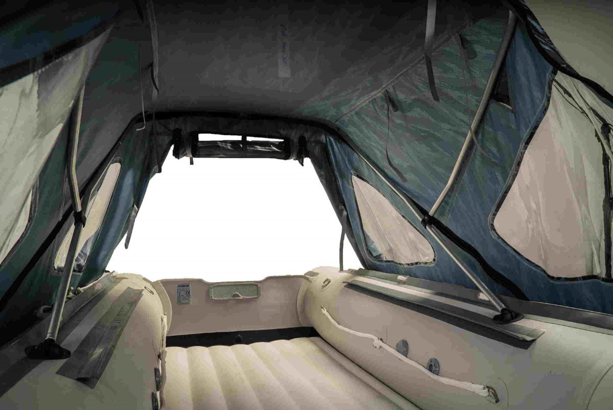 Тент-трансформер (ходовой тент) Разновидность ходового тента, главной отличительной особенностью которого является особая конструкция, которая дает возможность открыть любую сторону лодки - нос, корму или с борта лодки. При этом остальные части тента остаются на каркасе и могут защищать от ветра или палящих лучей солнца. Если тент не нужен, его легко снять вместе с каркасом и сложить на нос лодки в удобный чехол. При этом остальные части тента остаются на каркасе и могут защищать от ветра или палящих лучей солнца. Если тент не нужен, его легко снять вместе с каркасом и сложить на нос лодки в удобный чехол. Тент-трансформер позволяет чувствовать себя уверенным на воде вне зависимости от погодных условий: До шести механизмов трансформации. Смотровые окна оснащаются москитной сеткой. Прост в установке и при эксплуатации. Вентилируем. Отличная защита ваших вещей от дождя, брызг, снега и солнца. Компактная упаковка и малый вес. Для установки на надувную лодку необходима предварительная установка креплений для тента (палубные опоры). Стоимость креплений входит в общую стоимость тента. Комплектация: - сам тент со смотровыми окошками - легкий и прочный, складной каркас - крепления для установки на лодку (палубные опоры) - клей - инструкция по эксплуатации - чехол для хранения и переноски тента